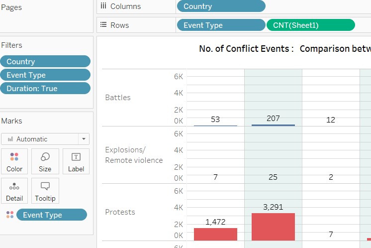 7.5.8 Rename the worksheet as Event Count. Final Visualisation as follows.