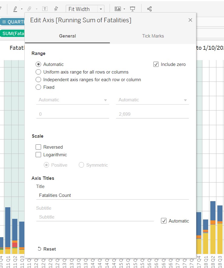 7.6.2 Configure the Sum(Fatalities) count as follows