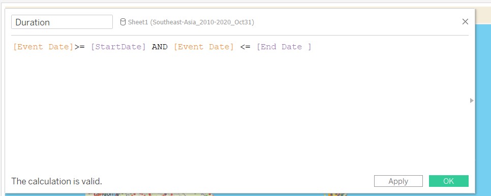 7.1.3 Create the Calculated Field Duration using the newly created parameters: