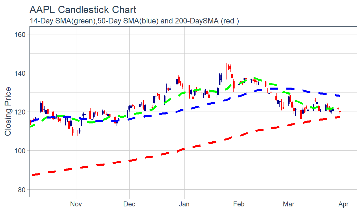 labs(title = "AAPL Candlestick Chart", y = "Closing Price", x = "") +