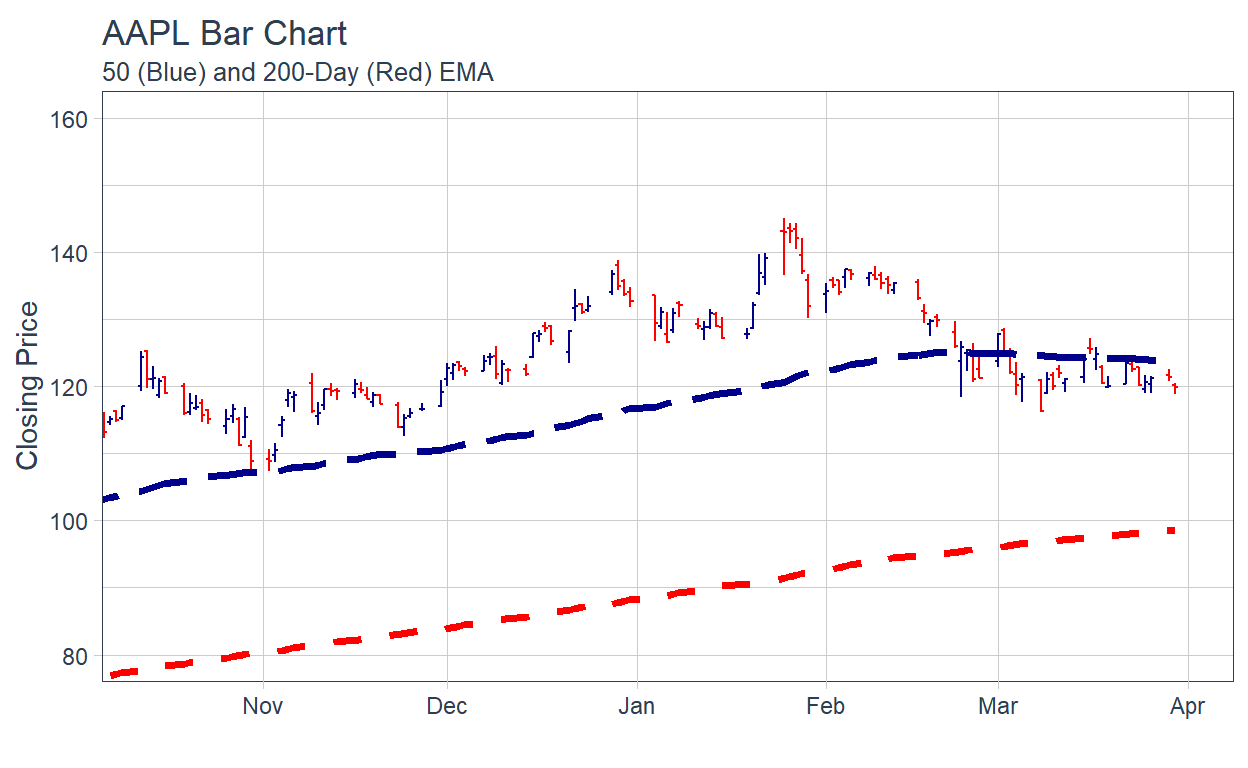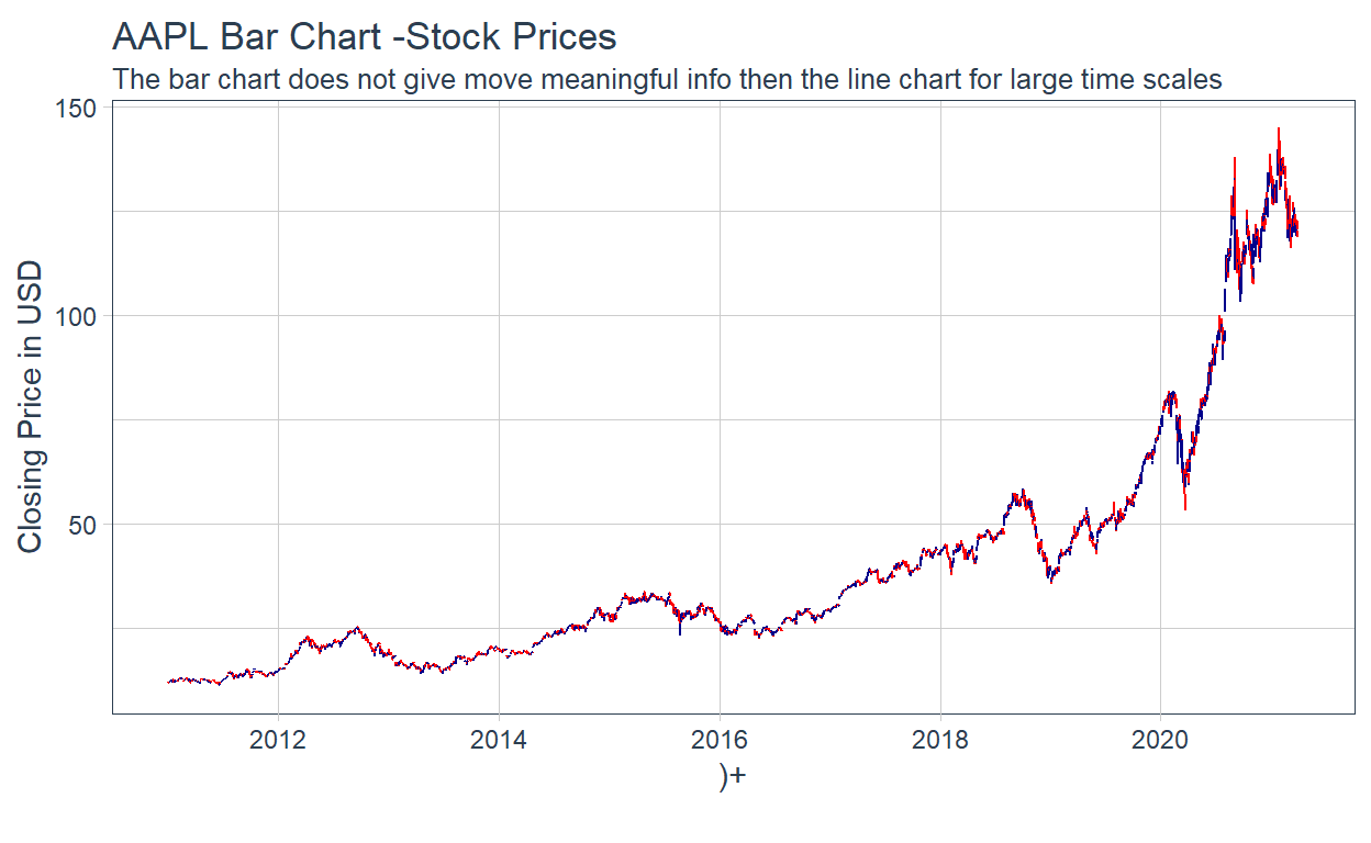 labs(title = "AAPL Bar Chart of Stock Prices",