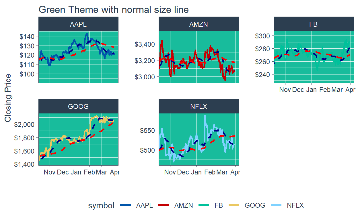 labs(title = "Green Theme with normal size line",