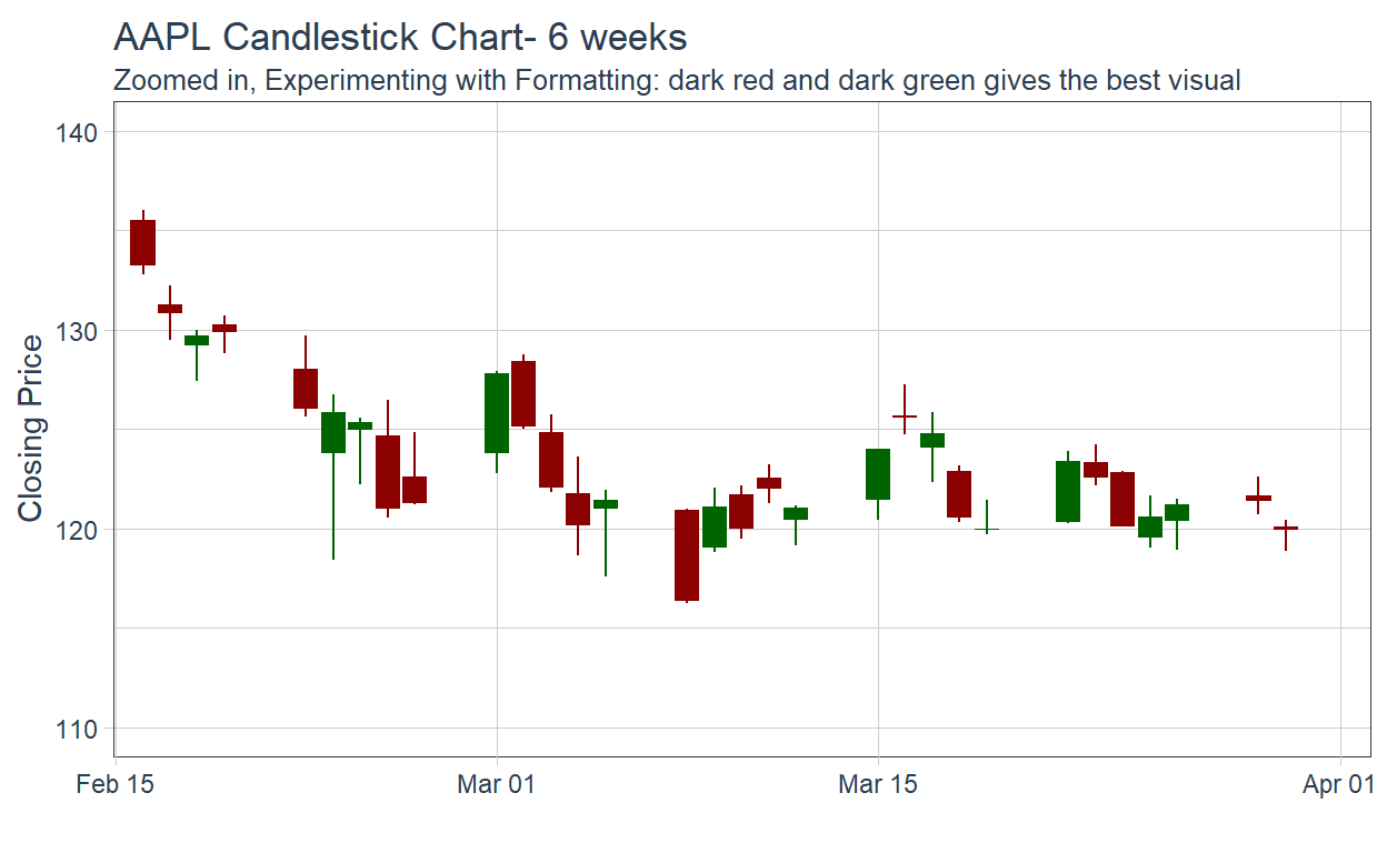 labs(title = "AAPL Candlestick Chart- 6 weeks ",